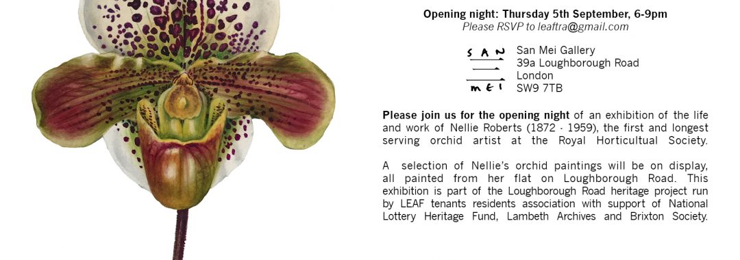 A new exhibition of the work of local artist Nellie Roberts (1872-1959) will open in the San Mei Gallery, 39a Loughborough Road Sw9 7TB on Thursday 5th September, 6-9 pm.